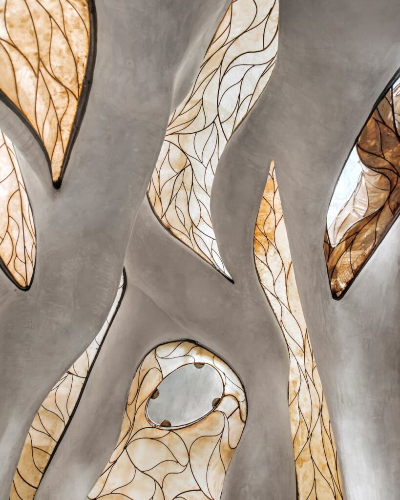 Los visitantes se sumergen en una experiencia contemplativa que favorece la apertura y la conexión con el arte como puente hacia lo sagrado. Las ventanas, como lienzos de luz, acentúan el contraste entre concreto y bejuco y guían un recorrido orgánico y sereno.